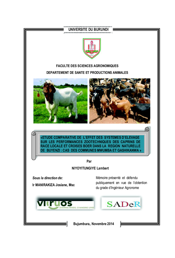 Lambert-Mémoire Facagro/UB: Effet Des Systemes D’elevage Sur Les Performances Zootechniques Des Caprins De Race Locale Et Croises Boers/ngozi