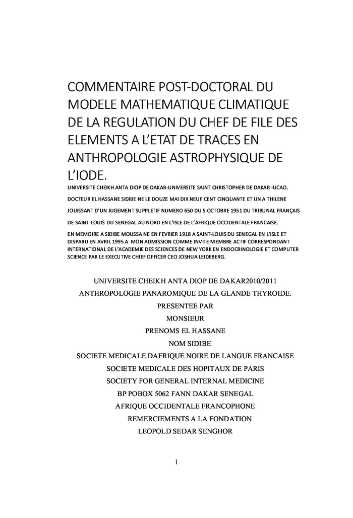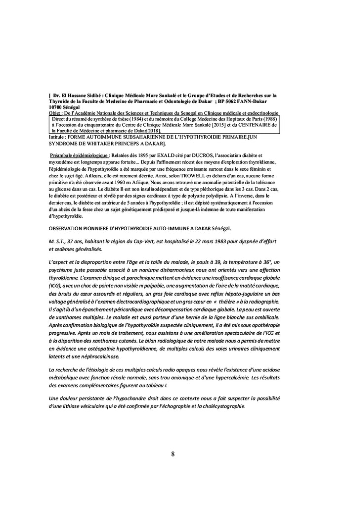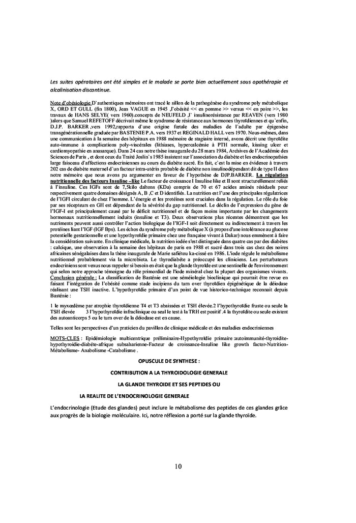 HYPOTHYROIDIE ENDOCRINO-DIABETO-METABOLIQUE AUTO-IMMUNE.: SYNTHESE DE THESE POST-DOCTORALE EN MEDECINE ET SCIENCES HUMAINES DES UNIVERSITES DE PARIS & DAKAR [10 FEVRIER 2020]