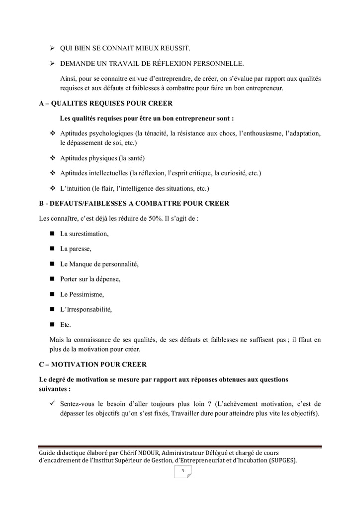 Guide didactique de l'étudiant:: Creation d'entreprise, redaction de business plan, action professionnelle, rapport de stage