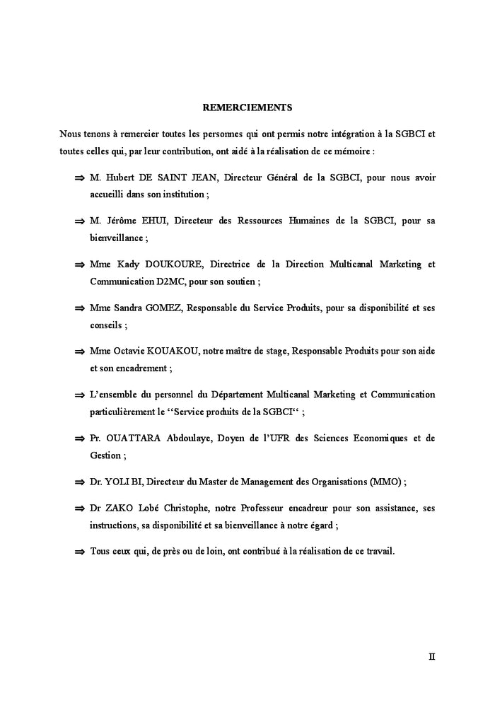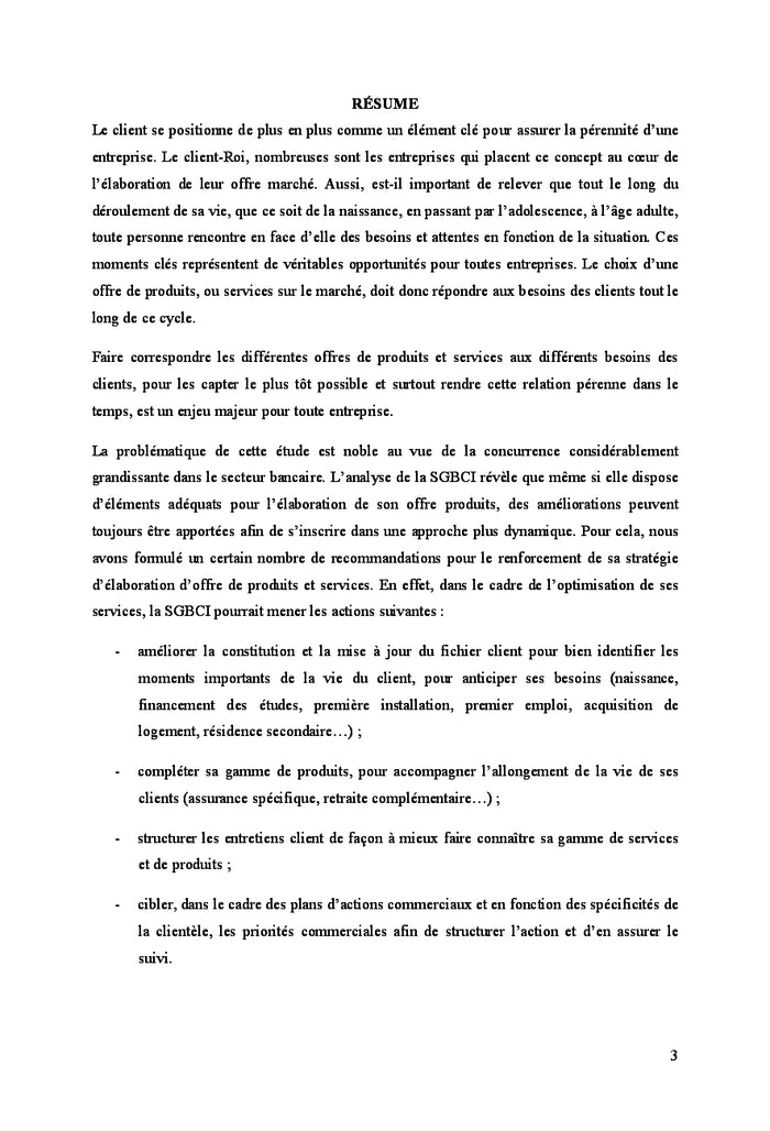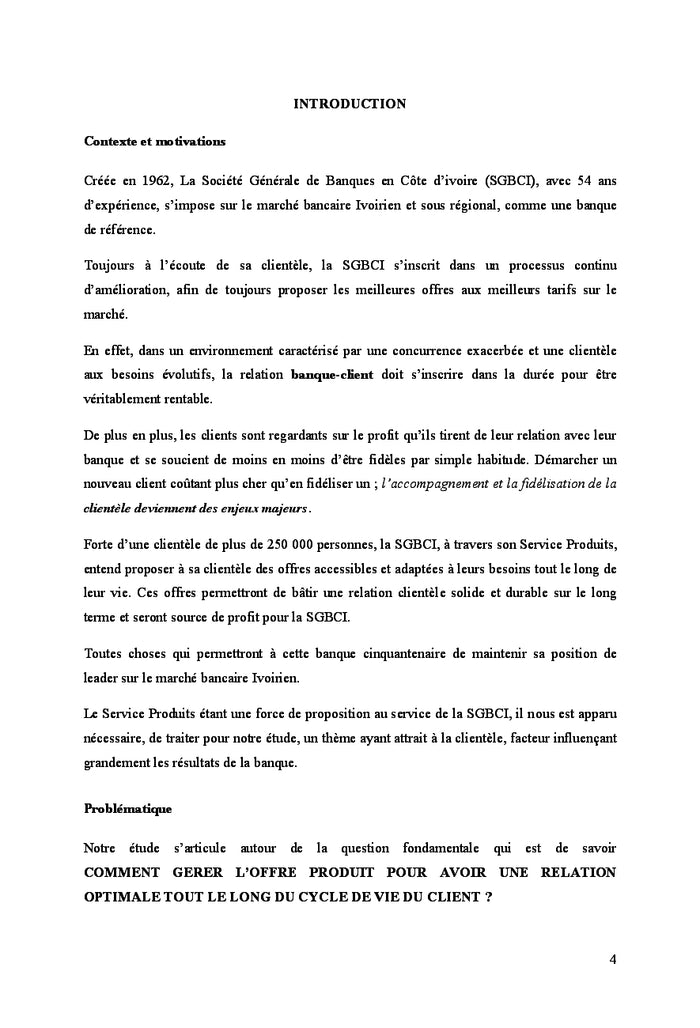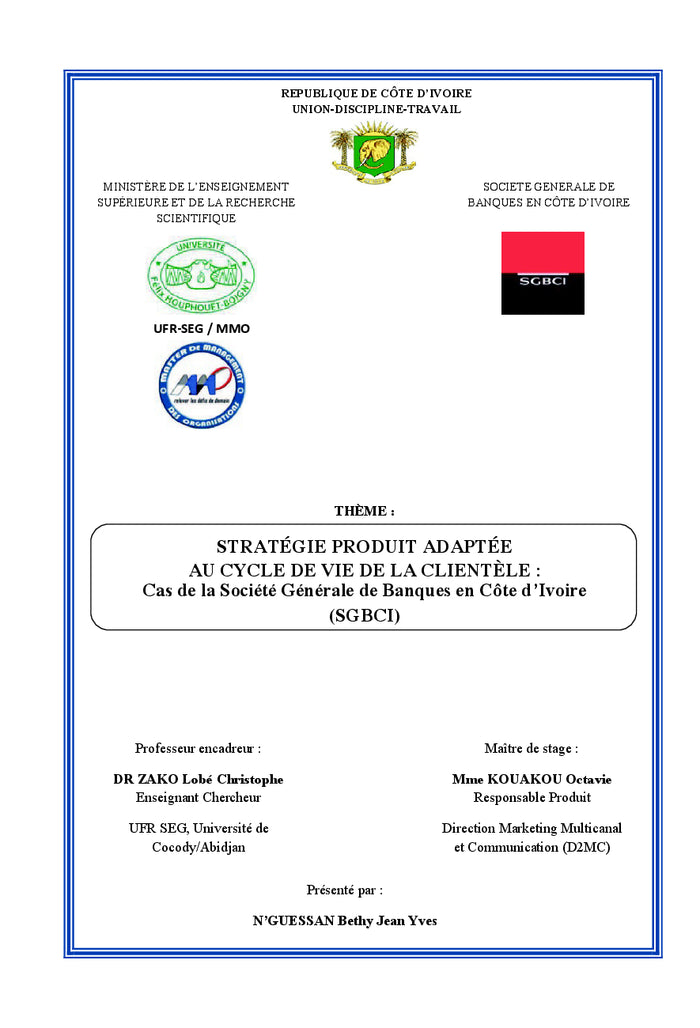 Stratégie Produit Adaptée au Cycle de Vie de La Clientèle Bancaire: Cas de la Société Générale de Banques en Côte d'Ivoire (SGBCI)