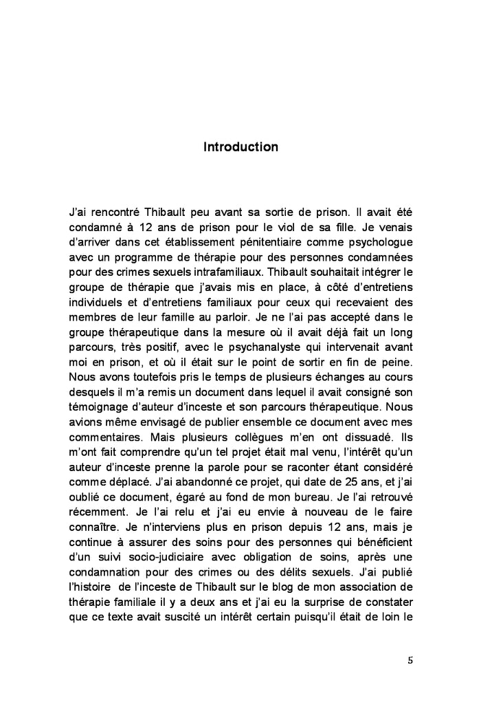 PrésentationPsychologue systémicien, humaniste, à l'écoute des personnes qui ont commis l'inceste comme de celles qui ont subi l'inceste, mais aussi des membres de l'entourage familial, Michel Suard tente dans cette étude de mettre en question ce qu'il nomme le « psychologiquement correct », c'est-dire le discours dominant qui veut que les auteurs d'inceste soient le plus souvent des manipulateurs pervers en fort risque de récidive, que les victimes soient détruites à vie, que les mères des enfants victimes soient toujours sinon complices, du moins non protectrices. À partir des situations rencontrées dans son expérience professionnelle, il met en évidence les possibilités de restauration de l'auteur comme de la victime, voire de la restauration des liens. Enfin, il remet en question certaines pratiques judiciaires et expertales, de même que le vocabulaire utilisé dans ces problématiques. Afficher moinsAfficher plus