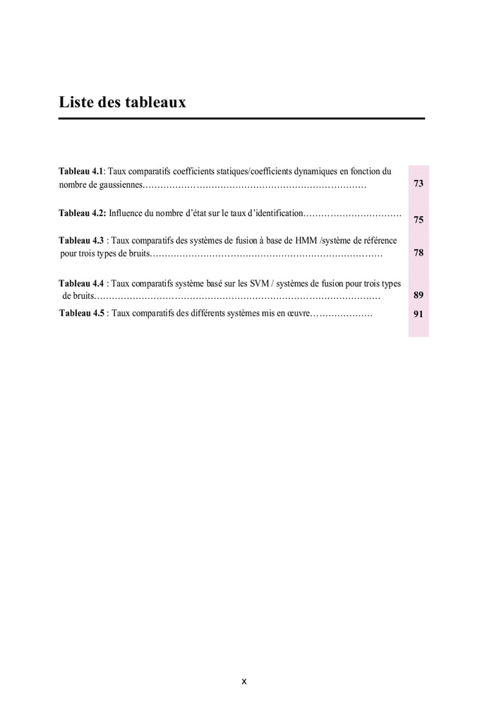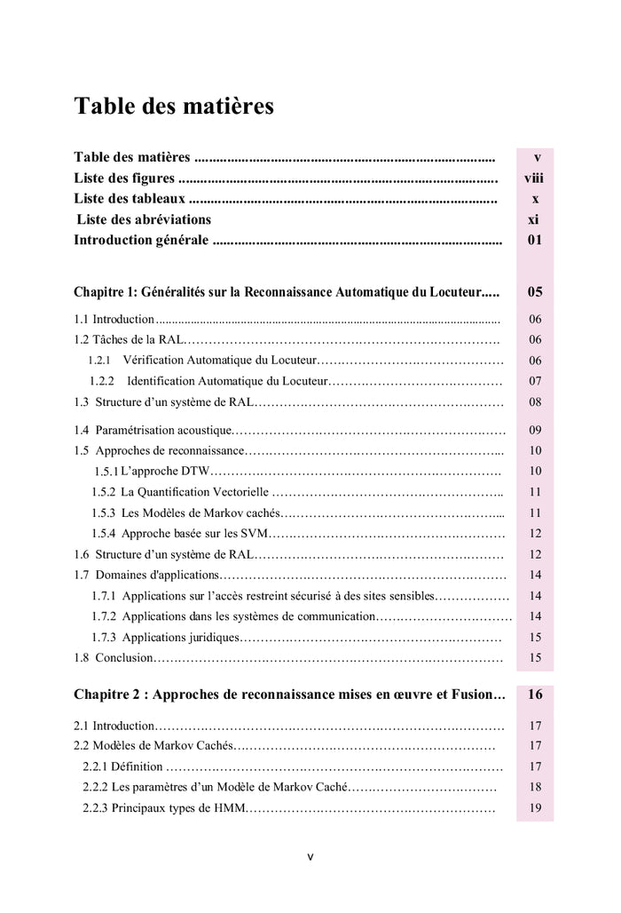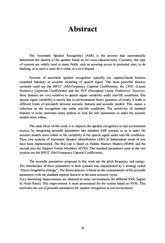 La Reconnaissance Automatique du Locuteur (RAL) est le processus qui détermine automatiquement l'identité de celui qui parle en se basant sur ses caractéristiques vocales. Actuellement, ce type de système est largement utilisé dans plusieurs domaines, tels que la sécurisation d'accès à des sites protégés, pour faire des transactions bancaires, ou pour répondre aux besoins d'un tribunal pour un crime ou un litige civil. Les systèmes de Reconnaissance Automatique du Locuteur utilisent généralement des paramètres cepstraux dits paramètres standards comme modélisation acoustique du signal de parole. Les paramètres cepstraux les plus performants actuellement sont les coefficients MFCCs (Mel Frequency Cepstral Coefficients), les coefficients LPCC (Linear Predictive Cepstrum Coding) et les coefficients PLP (Perceptual Linear Predictive). Cependant, ces paramètres restent très sensibles aux variations du signal vocal. Cette variabilité est causée par l'environnement (présence de bruit) et le locuteur (l'âge, la fatigue, le sexe). Afficher moinsAfficher plus