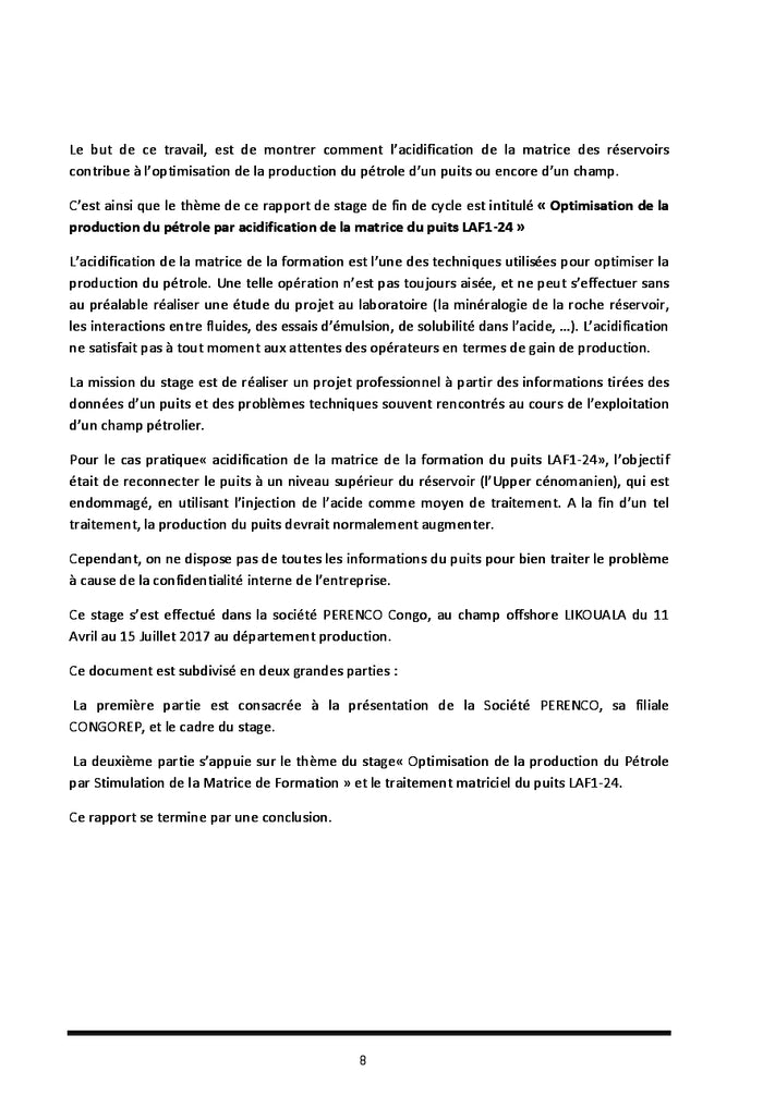 PrésentationL'optimisation de la production du pétrole consiste à maintenir si non à améliorer la récupération en tenant compte des paramètres du réservoir. Plusieurs méthodes sont utilisées pour optimiser la production. Parmi ces méthodes on peut citer: l'activation des puits, la complétion, les perforations additionnelles, la stimulation, l'injection des produits chimiques et bien d'autres encore. Dans ce livre dont l'objectif est d'améliorer la production du puits LAF1-24, on utilise une de ces méthodes ci-dessus citées. Pour atteindre cet objectif, on a utilisé un système d'acquisition des données. Ce système a constitué à faire des investigations sur le puits : son historique, les well tests afin de déterminer la cause exacte de cette chute de production. Les résultats issus de ces investigations ont permis d'adopter la stimulation par acidification de la matrice de la formation comme procédé pour optimiser la production du puits LAF1-24. Toutefois, il sied de notifier que l'option choisie n'apporte toujours pas le résultat escompté. C'est ainsi que, le résultat obtenu au terme de cette opération ne s'avère pas satisfaisant par rapport aux attentes formulées. Afficher moinsAfficher plus