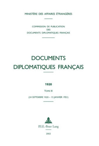 Documents diplomatiques français: 1920 - Tome III (24 septembre 1920 - 15 janvier 1921)