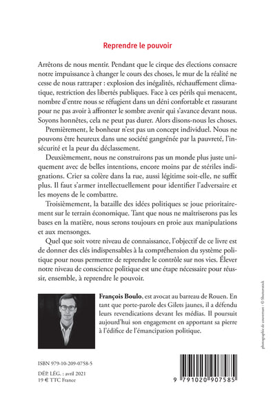 François Boulo fut l'une des figures les plus charismatique du mouvement de Gilets jaunes. Ce livre est l'histoire de son «combat», depuis la sortie de ce qu'il nomme son « coma politique » jusqu'à ce qu'il enfile le gilet jaune par-dessus sa robe noire pour dessiner le monde d'après.