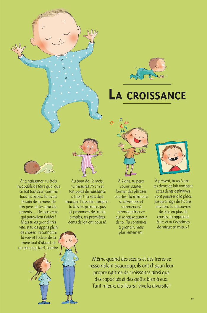 Présentation Mon corps est GÉNIAL est une collection de deux albums, animés de voletsà soulever, pour découvrir notre merveilleux corps de façon humoristique et pédagogique ! Les auteures plongent l’enfant dans le corpsà travers ses propres expériences et enrichissent le propos par des conseils avisés de mamans. Voyons, comment grandis-tu ? Qu’est-il arrivé depuis que tu es bébé ? Si tu as de la fièvre, que se passe-t-il dans ton corps ? Et, si tu veuxêtre en forme, respecte ton horloge interne ! Livre 1 : Son organisation intérieure. Un cerveau« chef d’orchestre », des os et des muscles costauds, des hormones qui nous font grandir, un système de défense contre les intrusions, un réseau sanguin de 100 000 km de long… Notre corps est un super-héros ! T’es-tu déjà demandé comment tu grandis ? Pourquoi tu dors la nuit ?À quoi sert la fièvre qui se déclenche quand tu es malade ? Pour quelle raison tu as envie de fuir quand tu as peur ? Un ouvrage visuel et ludique, pour tout connaître sur le fonctionnement et l’organisation intérieure de notre corps ! Afficher moinsAfficher plus