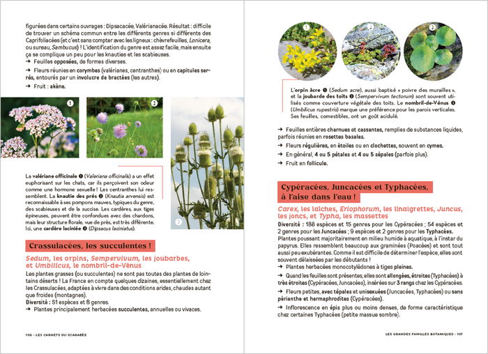 Les Carnets du Scarabée, pour renouer avec la nature en apprenant à mieux la connaître. Guide botanique de Lucile Chapsal, mêlant connaissances sur les plantes sauvages, techniques d'identification et conseils de protection. Un ouvrage richement illustré et pédagogique, permettant au lecteur de s'initier à la botanique et de découvrir la diversité florale qui nous entoure. Afficher moinsAfficher plus