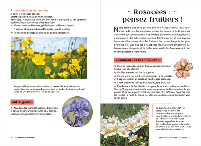 Les Carnets du Scarabée - Fleurs sauvages - Guide pratique pour se familiariser avec les grandes familles botaniques de plantes sauvages à fleurs et savoir les identifier