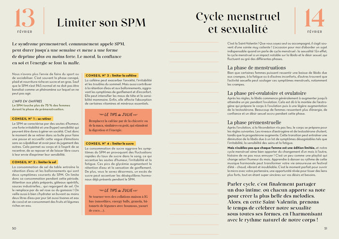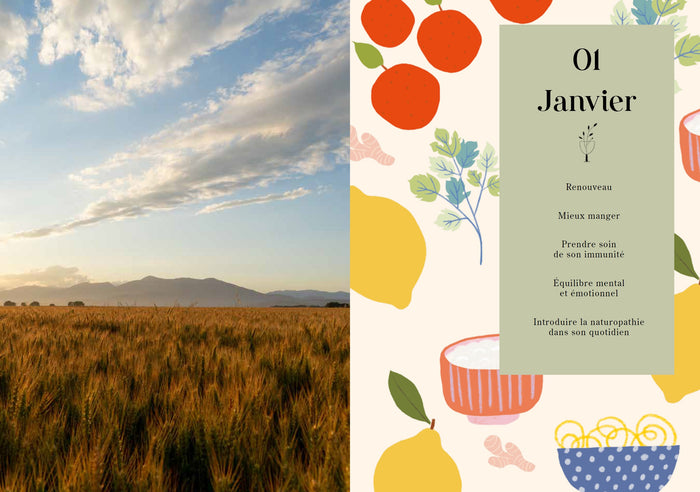 Note biographique Julie Pradinesest une naturopathe certifiée mais, avant tout, une aventurière du bien-être ! À la suite d'un bouleversement émotionnel qui l'a conduite à développer le syndrome de l'intestin irritable, elle se met en quête de réponses et de solutions dans la médecine allopathique, avant de se tourner vers la médecine naturelle. Une aventure qui l'a menée en Inde, où elle a découvert son premier amour, l'Ayurvéda, mais aussi au Vietnam, où elle a appris les secrets de la médecine asiatique. Cette vision holistique de la santé, a laissé une empreinte indélébile et lui a permis de se transformer, et de guérir sa maladie. Elle partage aujourd'hui ses connaissances avec des milliers de personnes à travers ses réseaux sociaux (92 000 abonnés sur Instagram), ses consultations, ses livres et e-books, ses conférences... Son petit plus, sa passion pour la cuisine gourmande et bienfaisante : pour Julie, l'alimentation ne doit jamais rimer avec frustration ! Selon elle, l'alimentation anti-inflammatoire est bien plus qu'une simple manière de se nourrir. C'est une philosophie qui influe positivement sur notre santé physique et mentale. L'alimentation devient thérapie. ,PrésentationCet almanach est un compagnon de route pour toute l'année, conçu pour vous accompagner pas à pas vers une vie plus saine. Chaque page est une invitation à découvrir une astuce naturelle, un rituel bien-être ou un conseil santé qui, jour après jour, transformeront votre vie. Embarquez pour une année de transformation ! Ce guide simplifié de naturopathie va mettre la santé et le bien-être au cœur de votre quotidien, avec 365 idées pratiques et des conseils applicables au quotidien. Chaque journée commence avec une action simple à intégrer dans votre routine. - Alimentation et nutrition :Découvrez comment les choix alimentaires peuvent devenir votre première médecine. Apprenez à sélectionner des aliments qui nourrissent non seulement votre corps mais aussi votre âme, avec des focus sur les produits de saison, les superaliments, et les astuces pour une alimentation équilibrée et bienfaisante. - Gestion du stress et santé émotionnelle :le stress est l'ennemi n°1 de votre immunité, votre microbiote et votre santé générale. Découvrez des aides naturelles pour le gérer, renforcer votre résilience émotionnelle et trouver la paix intérieure. - Activité physique et sommeil :L'importance d'un sommeil réparateur et d'une activité physique régulière n'est plus à prouver. Trouvez des idées pour bouger avec plaisir et des rituels pour améliorer la qualité de votre sommeil, afin de réveiller votre énergie vitale et favoriser la récupération et la régénération de votre corps. - Bien-être au naturel :Explorez les bienfaits des remèdes naturels, des herbes et des plantes médicinales. Apprenez à soigner vos petits maux du quotidien, à renforcer votre système immunitaire et à prendre soin de vous de manière naturelle. Dans cet almanach, vous retrouverez : Desrecettesgourmandes et bienfaisantes ; Desrituels bien-être: sommeil, énergie, antistress ; Lesinfusions thérapeutiques; Lesaides naturo pour se soigner au naturel; Lacomplémentationau fil des saisons ; Desrègles et conseils pour une alimentation saine sans prise de tête Lesastucespour revoir son hygiène de vie. Desidées d'activités pour se reconnecter à la nature Afficher moinsAfficher plus