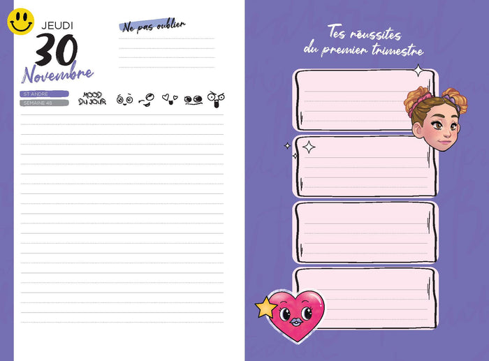 Dans cet agenda, les fans d'Eva CSTT, influenceuse sur TikTok, pourront passer une année scolaire en sa compagnie. Ils trouveront des anecdotes exclusives, pourront écrire les leurs, créer des playlists, des listes de résolutions, et retrouver les meilleures punchlines d'Eva. Des conseils sont également donnés pour séduire son crush et réussir l'année scolaire. Afficher moinsAfficher plus