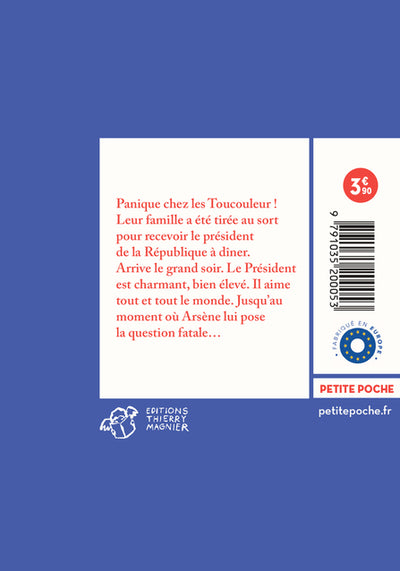 Dans ce conte moderne, la famille Toucouleur reçoit le président de la République à dîner. Le Président est bien élevé, il aime tout et tout le monde. Mais Arsène, le fils de la famille, lui pose une question qui va le mettre dans une situation délicate. Ce récit aborde avec humour et finesse des thèmes tels que la politesse, le respect et la liberté d'expression. Afficher moinsAfficher plus