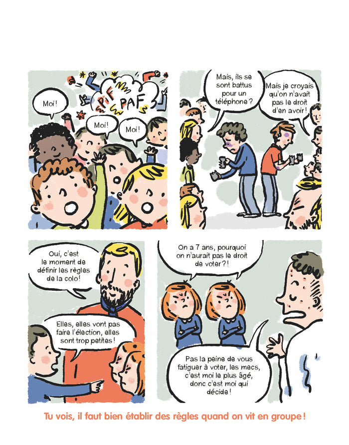 PrésentationEst-ce qu'on peut décider de tout quand on est le chef ? Comment bien vivre ensemble sans se disputer ? À quoi ça sert, les élections des délégués de classe ? Ces vraies questions d'enfants font écho à d'autres questions souvent perçues comme compliquées quand on est petit : À quoi ça sert, l'Assemblée nationale ? Quel est le rôle du Président ? Qu'est-ce que c'est, la démocratie ? C'est qui, les citoyens ? Qu'est-ce que ça veut dire, la laïcité ? À travers de petites scènes de la vie quotidienne, ce livre aide les enfants à comprendre très simplement pourquoi on vote, et comment notre République fonctionne. Il est illustré avec beaucoup d'humour et de clarté par Hubert Poirot-Bourdain et préfacé par Jacques Toubon, plusieurs fois ministre, député européen et ancien Défenseur des droits. Un livre pour faire réaliser aux enfants que la démocratie est précieuse, et qu'elle s'exerce partout, même dans leur vie quotidienne, à l'école, en famille ou avec les copains. Bien comprendre ses rouages, mettre en perspective la France dans son histoire et dans le monde, découvrir le rôle du gouvernement, et des partis politiques sont autant d'outils nécessaires pour qu'ils deviennent des citoyens éclairés ! Afficher moinsAfficher plus