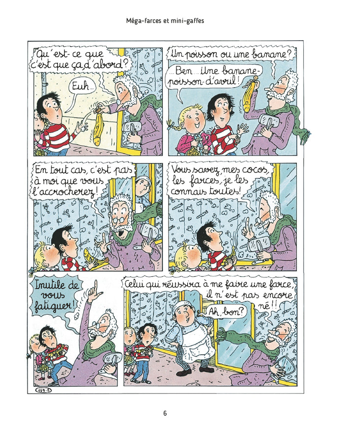 PrésentationBoules puantes, verres baveurs, coussins péteurs, fausses araignées, monstres en tous genres : les farces et attrapes, Tom-Tom et Nana adorent. Ils ont même du génie pour en inventer... Et faire parfois de jolies gaffes ! Mais farces ou gaffes, tout estbon pour qu'on rigole à "la Bonne Fourchette" dans la rue ou à l'école. Retrouve un joyeux échantillon de leurs aventures dans cet album ! Afficher moinsAfficher plus