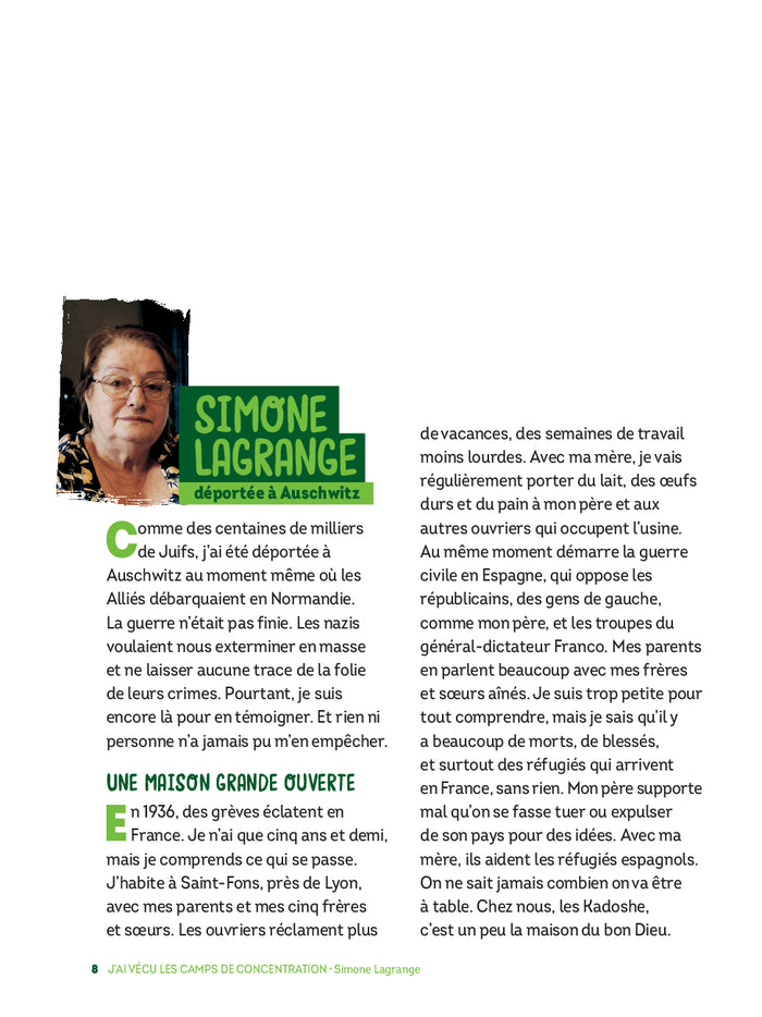 Présentation A l'occasion des80 ans de la libération des camps de concentration, voici la nouvelle édition d'un ouvrage qui propose les témoignages poignants de trois rescapés de la barbarie nazie. Ceux-ci ont accepté de raconter comment ils ont survécu à l'holocauste, en traversant des expériences différentes, en racontant leurs souffrances et leur appétit de vivre avec la même intensité, la même dignité, le même apaisement.  Simone Lagrange  Elle a 13 ans lorsqu'elle est arrêtée à Lyon, avec ses parents. L'homme qui la torture pour savoir où sont cachés ses frères et soeurs, c'est Klaus Barbie. Déportée à Auschwitz avec ses parents, elle sera seule à en revenir.  Christine Szenberg  Elle est parquée avec sa famille, dans le ghetto de Varsovie, dès 1940. Peu de temps avant qu'il ne soit détruit, elle s'enfuit avec sa mère et sa petite soeur dans les égouts, où elles vivront cachées pendant trois mois.  André Migdal  Il est arrêté à 16 ans par la police française pour faits de résistance. Il tait ses origines juives. Après des séjours dans des camps français, il sera déporté en mai 1944 à Neuengamme, en Allemagne. Afficher moinsAfficher plus