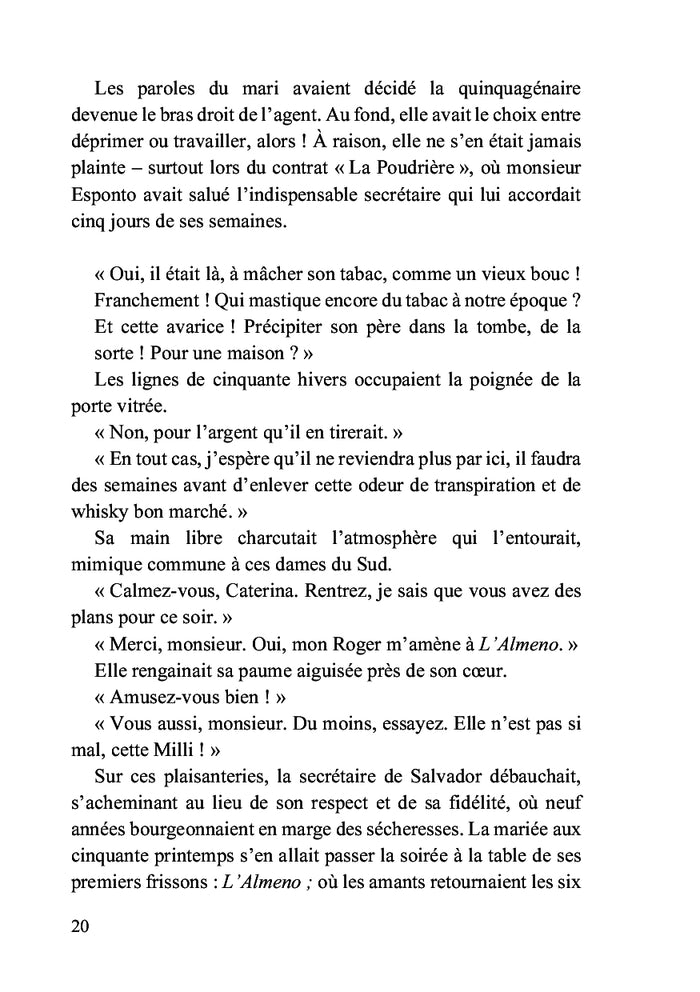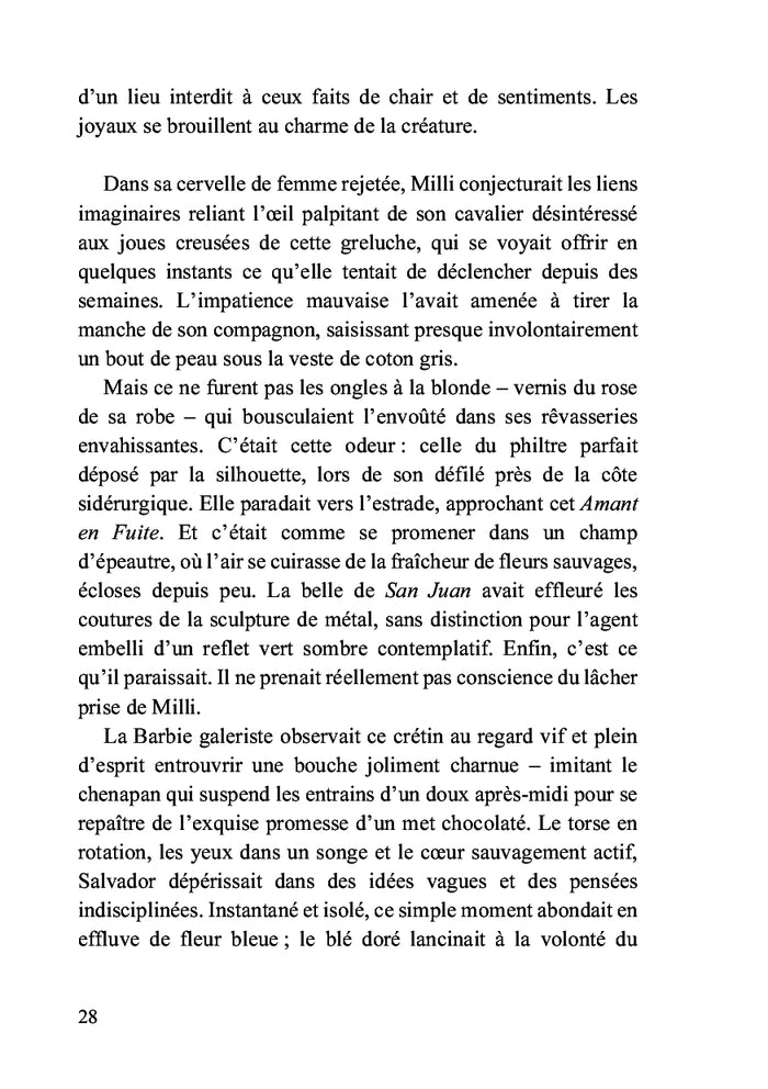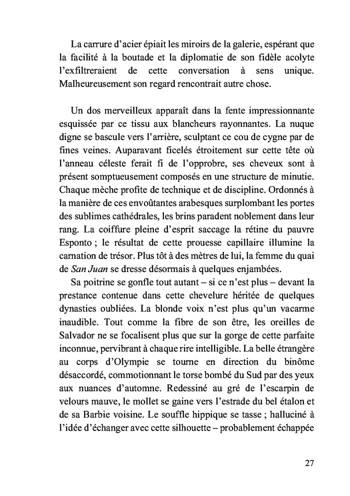 PrésentationSalvador Esponto est un homme du Sud, à la barbe impeccable et à l'allure virile. Loin du misérable quartier de son enfance, le robuste gaillard se passionne pour le domaine de l'immobilier et entame une carrière pleine de succès. Cependant, il tombe amoureux d'une silhouette sur la plage de San Juan, qu'il rencontrera à nouveau dans une galerie d'art. Cette mystérieuse inconnue saura animerson esprit sensible au point de changer le cours de sa vie. Afficher moinsAfficher plus