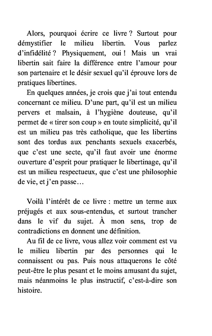 PrésentationMiss libert'in est un roman-guide qui dévoile le milieu libertin, vu de l'intérieur, et qui retrace son fonctionnement, ses acteurs, son histoire et sa littérature. Cet ouvrage, présent pour éclairer les indécis, est un outil qui aide à briser les tabous et les préjugés de ce mode de vie souvent dénigré ou insulté. Laissez-vous séduire par un peu d'audace et quelques petites mises en scène coquines... Afficher moinsAfficher plus