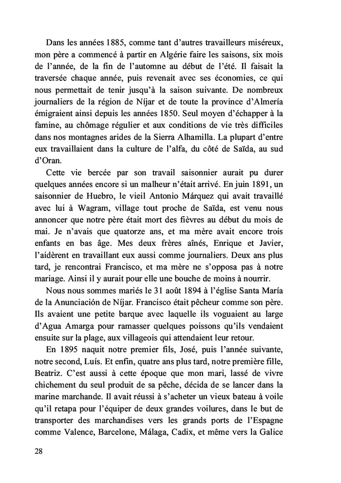 Au début du 20e siècle, une famille de pêcheurs espagnols quitte sa terre natale pour tenter sa chance en Algérie. Francisco Carmona Marín s'installe avec sa famille à Mostaganem, où il devient bracero. Ce roman historique retrace le destin de cette famille confrontée à la pauvreté et à la misère, dans l'espoir d'un avenir meilleur. Afficher moinsAfficher plus