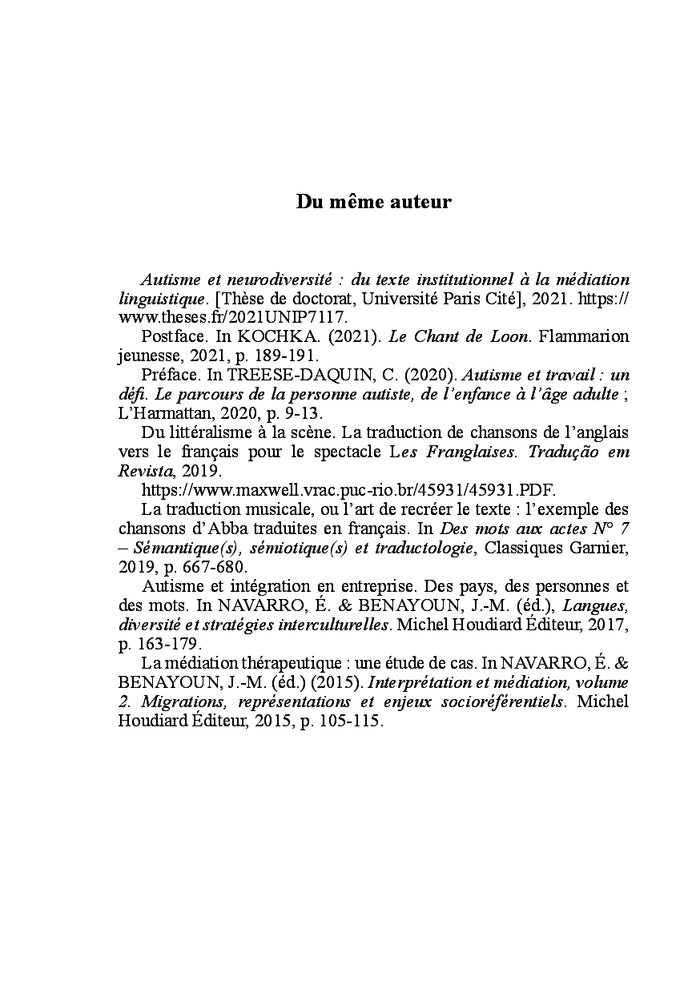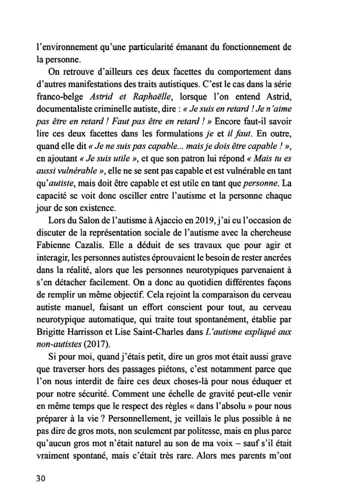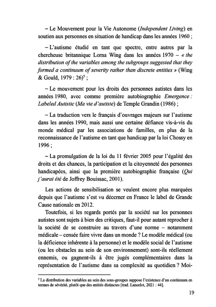 Le discours de sensibilisation à l'autisme est riche en nuances et en questionnements. Ce livre explore les différentes manières de parler de l'autisme, en se demandant s'il vaut mieux dire "personnes autistes" ou "personnes avec autisme". Il aborde également des thèmes tels que l'identité, les soins et le handicap, en mettant en lumière les contradictions qui existent dans ces domaines. En s'appuyant sur des témoignages et des réflexions, l'auteure invite le lecteur à repenser sa perception de l'autisme et à adopter une approche plus respectueuse et inclusive. Afficher moinsAfficher plus