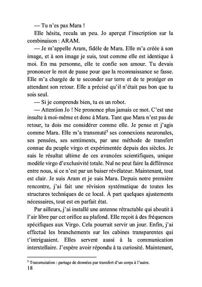 Dans ce roman de science-fiction, Jo fait face à la disparition de Mara, sa compagne venue d'une autre planète. Pour l'aider à surmonter sa douleur, Mara lui a laissé Aram, une partie d'elle-même sous forme d'intelligence artificielle. Jo et Aram vont alors explorer ensemble la Terre, mais leur relation évolue et se complexifie. Que se passera-t-il lorsque la vraie Mara reviendra ? Un récit poignant sur l'amour, la perte et l'identité. Afficher moinsAfficher plus