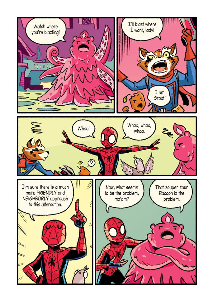 Spider-Man s'aventure dans l'espace pour rendre au Silver Surfer sa célèbre planche cosmique. Une mission simple ? Pas forcément, car Peter découvre une collection de talismans surpuissants dont il doit éviter à tout prix qu'ils ne tombent entre de mauvaises mains. C'est peut-être le moment de demander l'aide des Gardiens de la Galaxie ? Après "Animaux rassemblement" et "Quête quantique", Mike Maihack propose une nouvelle aventure tous publics associant Spider-Man au plus grands héros Marvel, avec un dessin très frais adapté à tous les âges. De quoi former une nouvelle génération de fans ! Afficher moinsAfficher plus