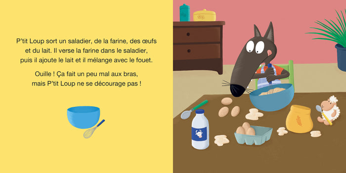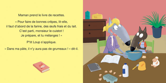 PrésentationLe nouvel album P'tit Loup pour faire sauter les crêpes ! Aujourd'hui, P'tit Loup a envie de faire des crêpes ! Il sort tous les ingrédients et commence à cuisine, mais patatras, tout tombe par terre ! Heureusement, Maman est là : cuisine en famille, c'est tellement plus rigolo ! Afficher moinsAfficher plus