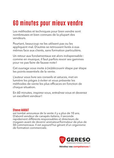 Dans cet ouvrage, Steeve Marait propose aux vendeurs un retour aux fondamentaux de la vente en magasin. En 60 minutes, il présente les étapes essentielles de la vente, livre des conseils pratiques, met en lumière les pièges à éviter et présente les méthodes les plus efficaces. Que ce soit pour les vendeurs débutants en manque de formation ou pour ceux souhaitant perfectionner leurs techniques, ce guide rapide et concret est un précieux allié. Afficher moinsAfficher plus