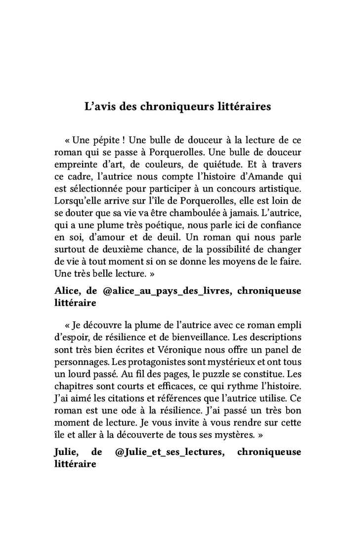Amande a tout sacrifié pour John, jusqu'à découvrir qu'il lui cachait son admission à un concours d'art. Brisée, elle décide de partir sur l'île de Porquerolles pour réaliser son rêve artistique. Accueillie par le sculpteur Philéas, elle devra affronter ses peurs, se libérer du joug de John et trouver sa place. Entre rencontres secrètes et passé douloureux, Amande devra apprendre à s'attacher sans se perdre. Son destin l'a-t-il menée sur cette île depuis toujours ? Un roman poignant sur la résilience, l'art et les secondes chances. Afficher moinsAfficher plus