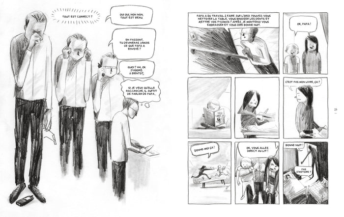 Dans cette bande dessinée, Aude Le Boucher aborde les questionnements et les difficultés de la paternité moderne à travers les parcours croisés de deux hommes, Pat et Mathieu. Ces deux jeunes pères tentent de se démarquer des modèles parentaux oppressants qu'ils ont connus, mais se trouvent confrontés à leurs propres failles et contradictions. Pat, marqué par les traumatismes de son enfance, doit lutter contre une violence intérieure qui menace de le submerger. Pendant ce temps, les mères de leurs enfants, investies dans leur carrière, laissent aux pères le soin de gérer le quotidien familial. Une réflexion profonde sur la transmission des blessures, le rôle des genres et la quête d'une paternité épanouie. Afficher moinsAfficher plus