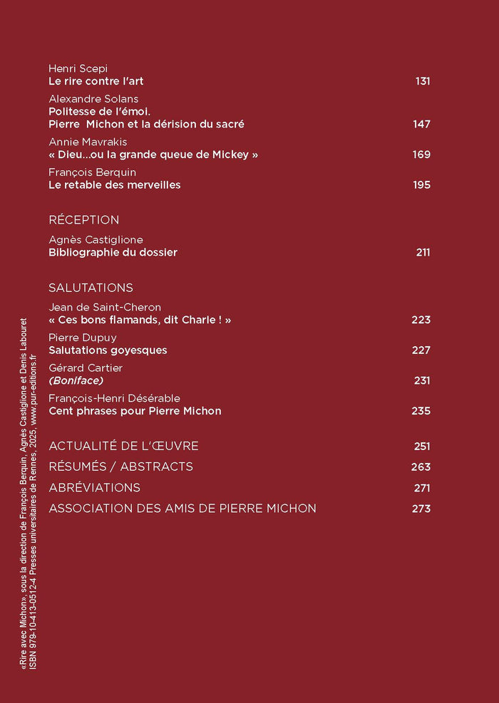 Ce troisième numéro des Cahiers Pierre Michon se penche sur la place de l'humour et du comique dans l'œuvre de l'écrivain. Les différents articles analysent les procédés humoristiques utilisés par Michon, du grotesque à l'ironie en passant par la parodie. Ils évoquent également l'influence de figures littéraires telles que Flaubert et le thème de l'enfance dans son œuvre. Enfin, le cahier propose des entretiens sur Tintin et revient sur les débuts de Michon en tant qu'écrivain. Afficher moinsAfficher plus