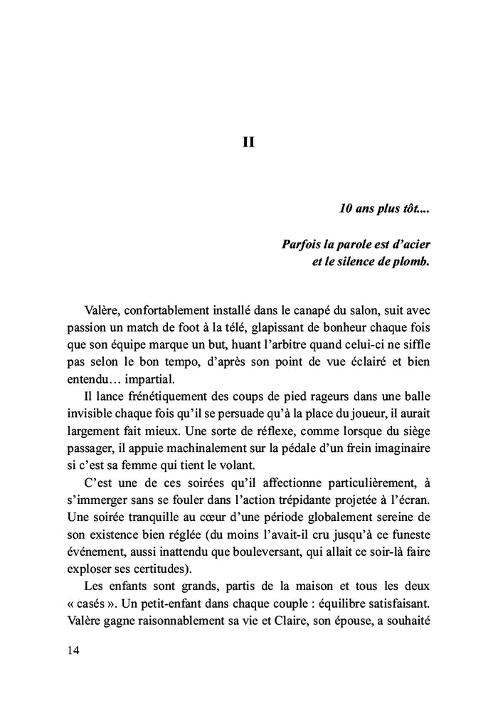 Valère mène une vie réglée, éliminant tout imprévu. Lors d'une sortie en forêt, sa routine est bouleversée par une rencontre inattendue. Ce roman explore la résilience de cet antihéros maladroit, face à un enfant de cinq ans et des événements insolites. Une invitation à se détacher du moi ordinaire pour découvrir notre véritable identité. Afficher moinsAfficher plus