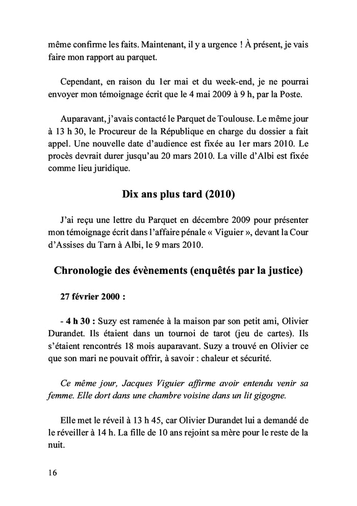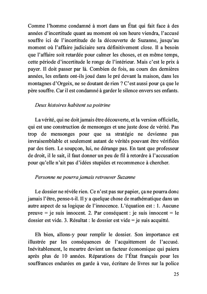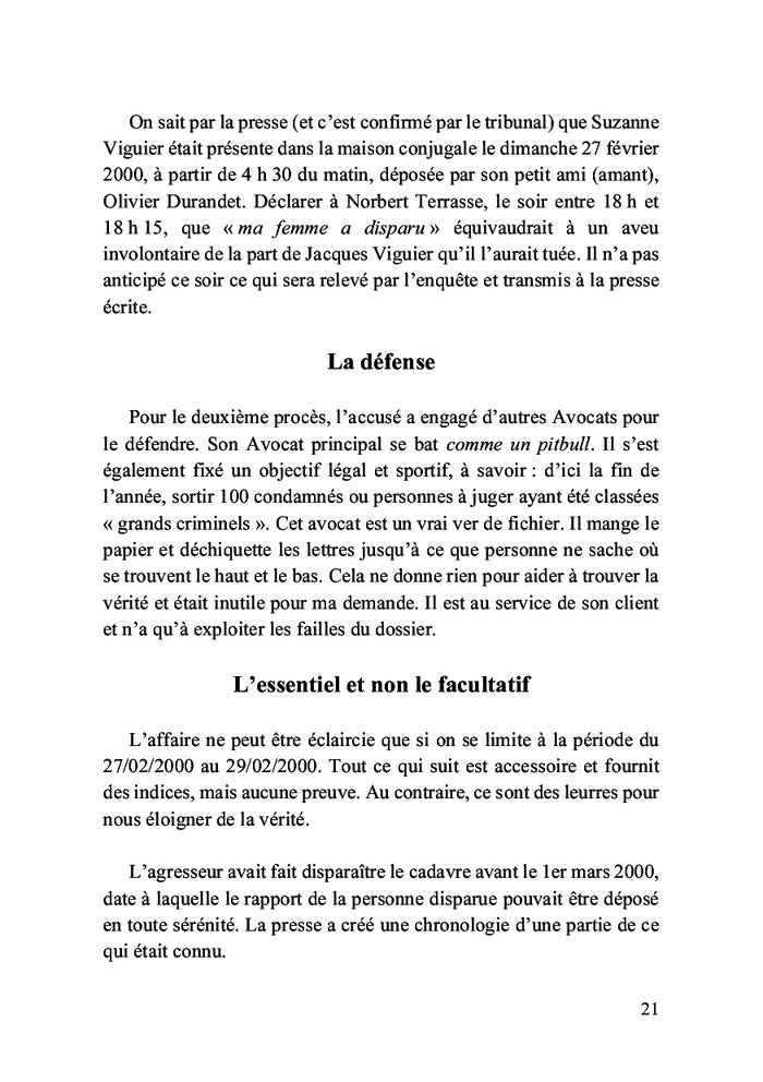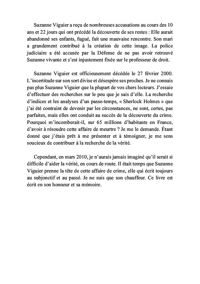En février 2000, Suzanne Viguier disparaît de sa résidence familiale à Toulouse. Les autorités peinent à résoudre cette énigme, mais un témoin anonyme décide de mener sa propre enquête. Convaincu d'avoir découvert des éléments clés, il s'engage dans une quête de vérité rigoureuse. Ce récit captivant, appuyé par des preuves scientifiques, plonge le lecteur au cœur d'une affaire de disparition mystérieuse. Afficher moinsAfficher plus