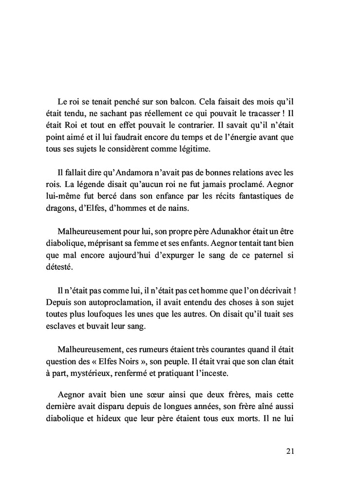 Dans un royaume dominé par la violence, le roi Aegnor et ses sujets rejettent la magie, la considérant comme une menace pour leur communauté. Le monde est divisé entre les opprimés et les persécuteurs, mais l'élue, le « porteur de la lumière », aspire à réunir les peuples marginalisés pour restaurer l'ordre. La magie, bien que présente, est bannie et Andamora, le berceau de ce monde, marquée par le pouvoir et l'influence, a été construite au prix du sang et de la sueur. Le Nord, en proie à des malheurs constants, parviendra-t-il à se libérer de l'oppression ? À travers les âges et avec le soutien de nouveaux alliés, le cours de l'histoire pourra-t-il finalement basculer ? Afficher moinsAfficher plus