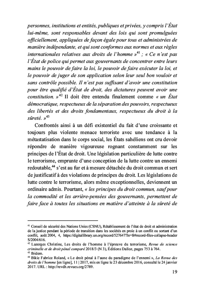 Les vicissitudes de l'Etat de droit à l'epreuve de la lutte contre le terrorisme au Sahel