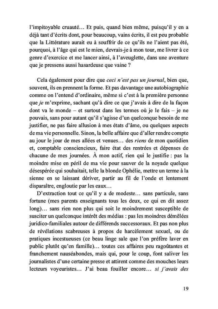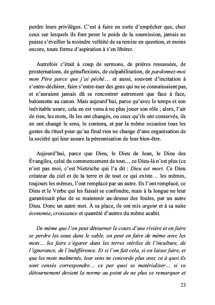PrésentationIl est bien connu qu'il n'y a pas d'effets sans cause. Si les effets sont souvent faciles à identifier, les causes, elles, demeurent bien plus insaisissables, souvent enfouies dans l'inavouable. Ce recueil tente d'éclairer, sous forme d'anecdotes, ce qui, dans certains cercles de pouvoir, se trame à notre insu. Au nom d'une idéologie prétendant être « libératrice » et porteuse de progrès, ces forces cachées ne font en réalité que nous asservir, détruisant sans remords toutes les formes de vie. Une exploration puissante des manipulations invisibles qui façonnent nos vies, souvent au nom du bien. Afficher moinsAfficher plus